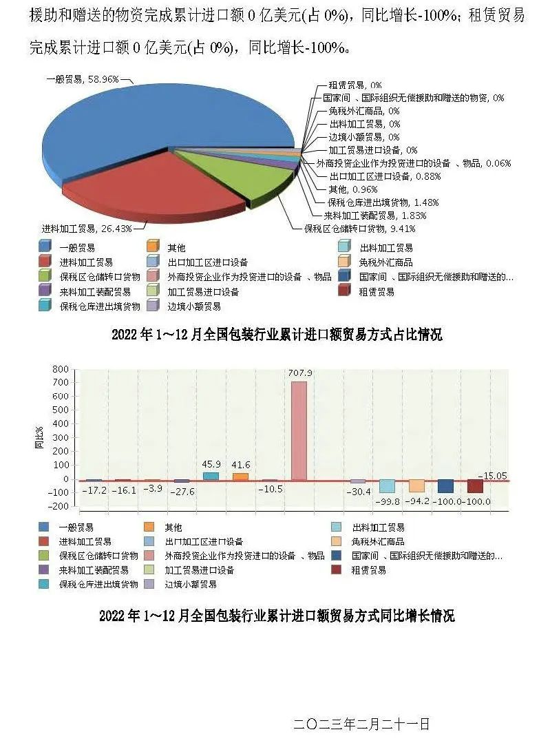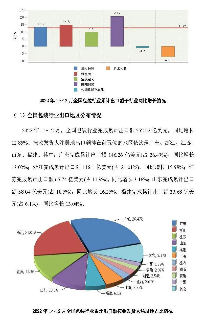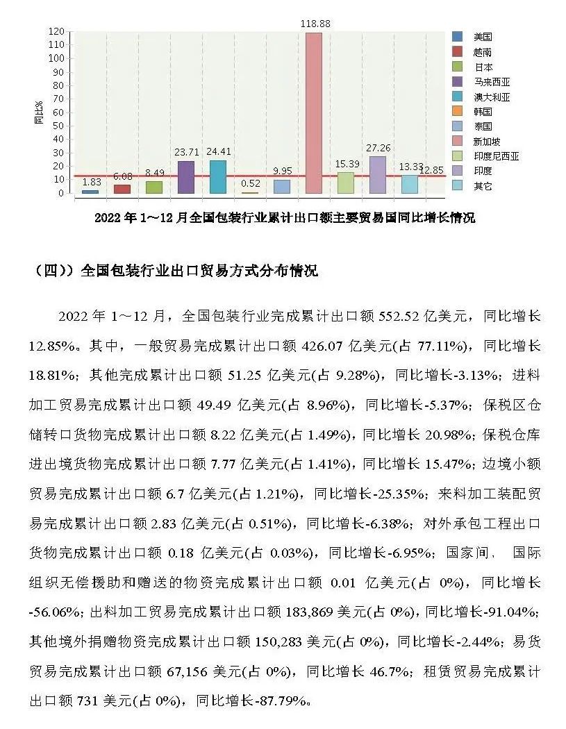 2月底,中國包裝聯(lián)合會(huì)發(fā)布了“2022年全國包裝行業(yè)進(jìn)出口概況”。根據(jù)報(bào)告顯示,2022年全國包裝行業(yè)完成累計(jì)進(jìn)出口總額693.63億美元,同比增長5.78%。行業(yè)對外貿(mào)易保持較大順差。